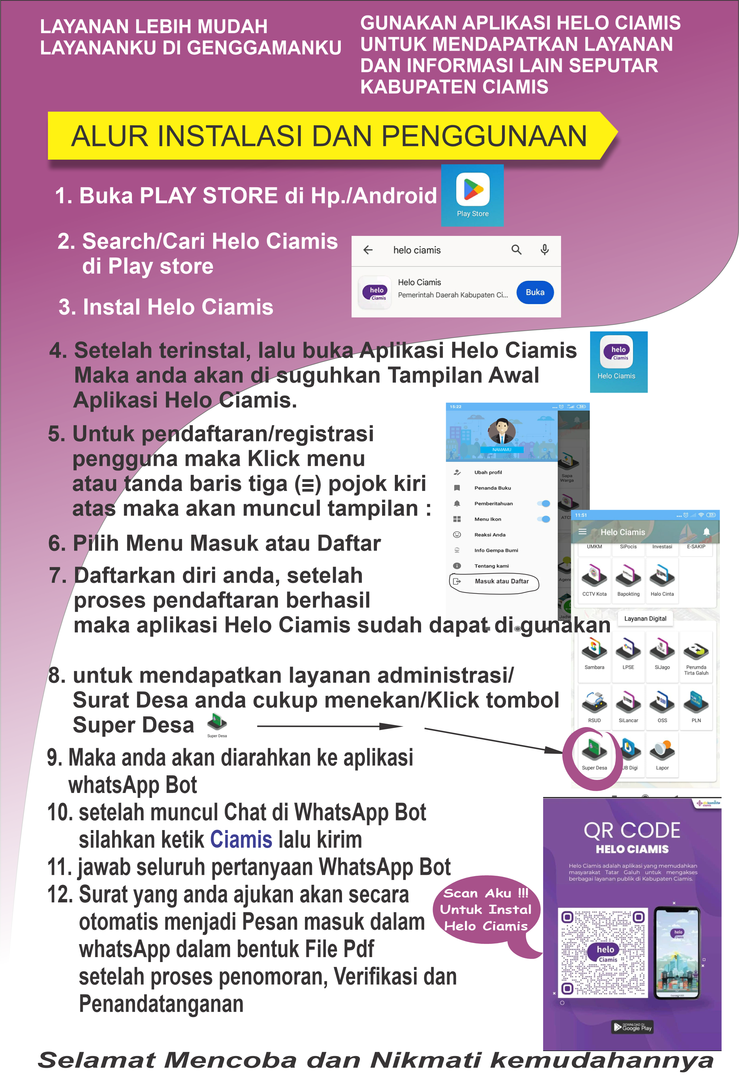 Dalam rangka meningkatkan pelayanan publik khususnya di Desa Selamanik, Pemerintah Desa Selamanik gencar mensosialisasikan penggunaan Aplikasi Helo Ciamis kepada masyarakat melalui berbagai kegiatan.